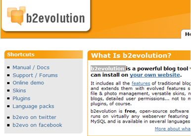 b2evolution Published 11/09/2010 at 386 × 275 in Top 5 Blogging Software for Self Hosted Blogs ← Previous Next → b2evolution b2evolution