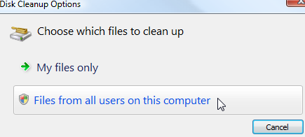 If you are using Windows 7 or Vista, you’ll be asked whether you want to clean up your files or all files…