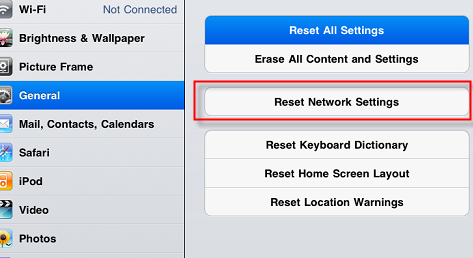 - Apple also suggests resetting networking settings on your iPad, by selecting Settings > General > Reset. Note, however, that this will reset all your network settings, including passwords, VPN, and APN settings.
